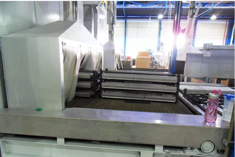 ροή κομματιών προς κατεργασία → φόρτωσης που ψεκάζει → που ξεραίνει → που περνά από την μπροστινή συγκολλώντας (με το άζωτο) → σκουριά → δωματίων κουρτινών (με το άζωτο) που αφαιρεί (άζωτο που προθερμαίνει) → που περνά από τη στατική δροσίζοντας αίθουσα → που περνά από το οπίσθιο δωμάτιο κουρτινών (με το άζωτο) → που περνά από το καταναγκαστικό εγχειρίδιο αιθουσών → αερόψυξης που βγάζει τους πυρήνες από τη ζώνη